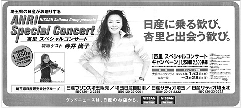埼玉県日産販売会社グループ様 [杏里スペシャルコンサート・キャンペーン] 新聞広告